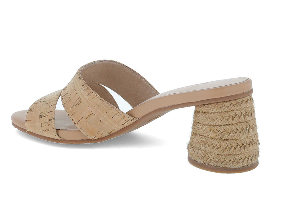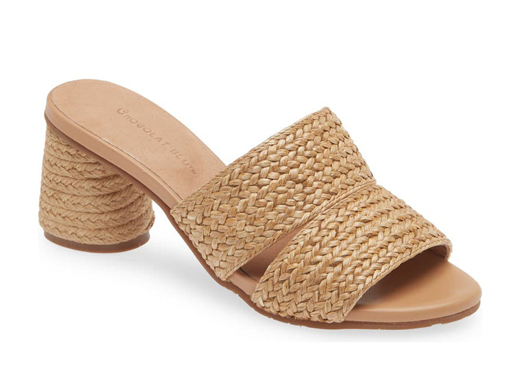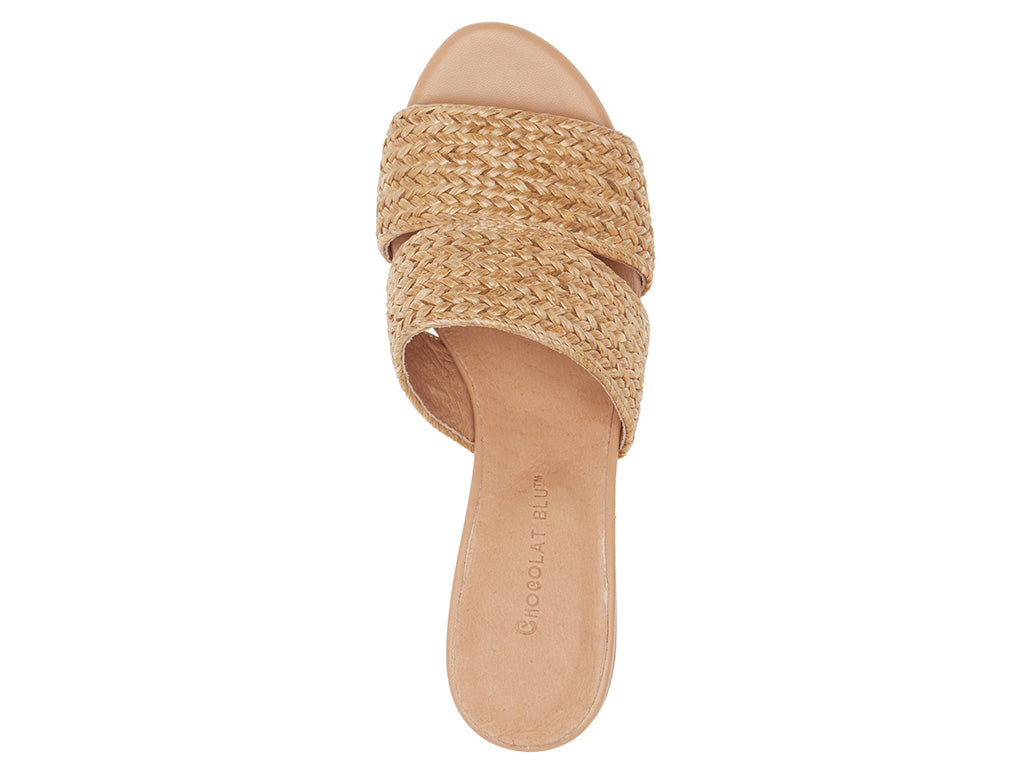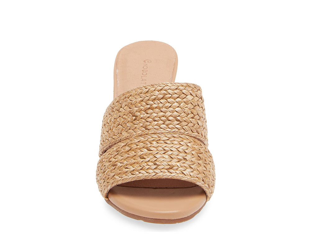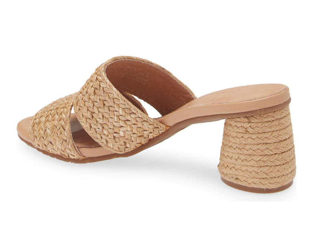 The Bara slide features a natural raffia upper, leather lining, and a 2 1/2" heel, making it a stylish and functional choice. The rubber outsole adds durability and stability to the sandal, making it perfect for any occasion.